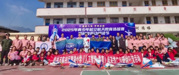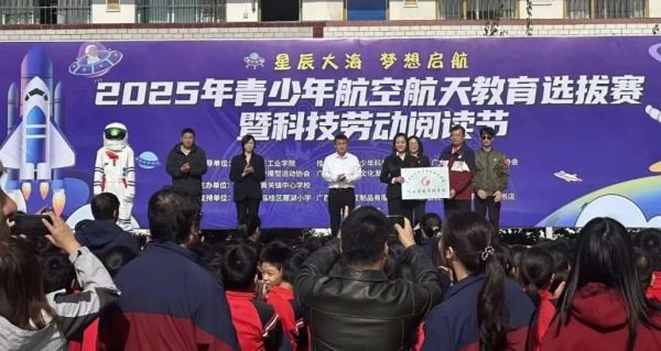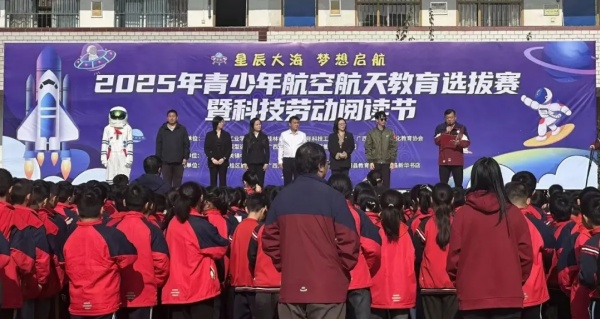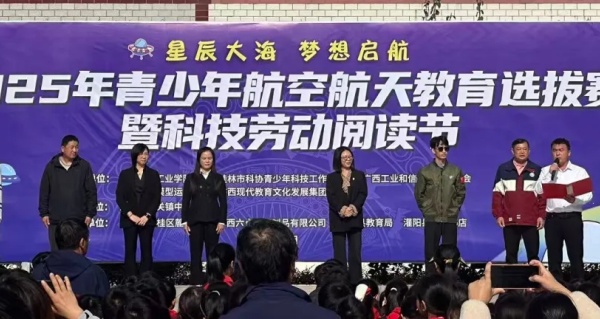 金秋十月,丹桂飘香。10月27日上午,灌阳县黄关镇中心小学操场上彩旗飘扬、气氛热烈,“2025年青少年航空航天教育选拔赛暨科技劳动阅读节”盛大开幕。桂林航天工业学院、桂林市科协青少年科技工作站、广西工业和信息化教育协会、广西现代教育文化发展集团有限公司、灌阳县新华书店为学校活动的开展提供了优秀的科普资源和支助。