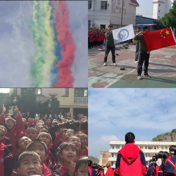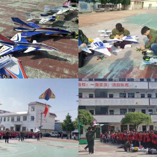 “我宣布,2025 年青少年航空航天教育选拔赛暨科技劳动阅读节正式开始!” 随着灌阳县教育局副局长一声宣布,开幕式迎来高潮。桂林航天工业学院探天飞行表演队随即登场,在激昂的航空音乐中,队员们带来了精彩的航空航天科技展演 —— 灵动的模型飞机穿梭盘旋,酷炫的航天知识讲解生动有趣,瞬间点燃了现场师生的热情。听着天空轰鸣的声音,同学们目不转睛地欣赏展演,不时发出阵阵惊叹,乡村校园里回荡着对科技的向往与欢呼。
